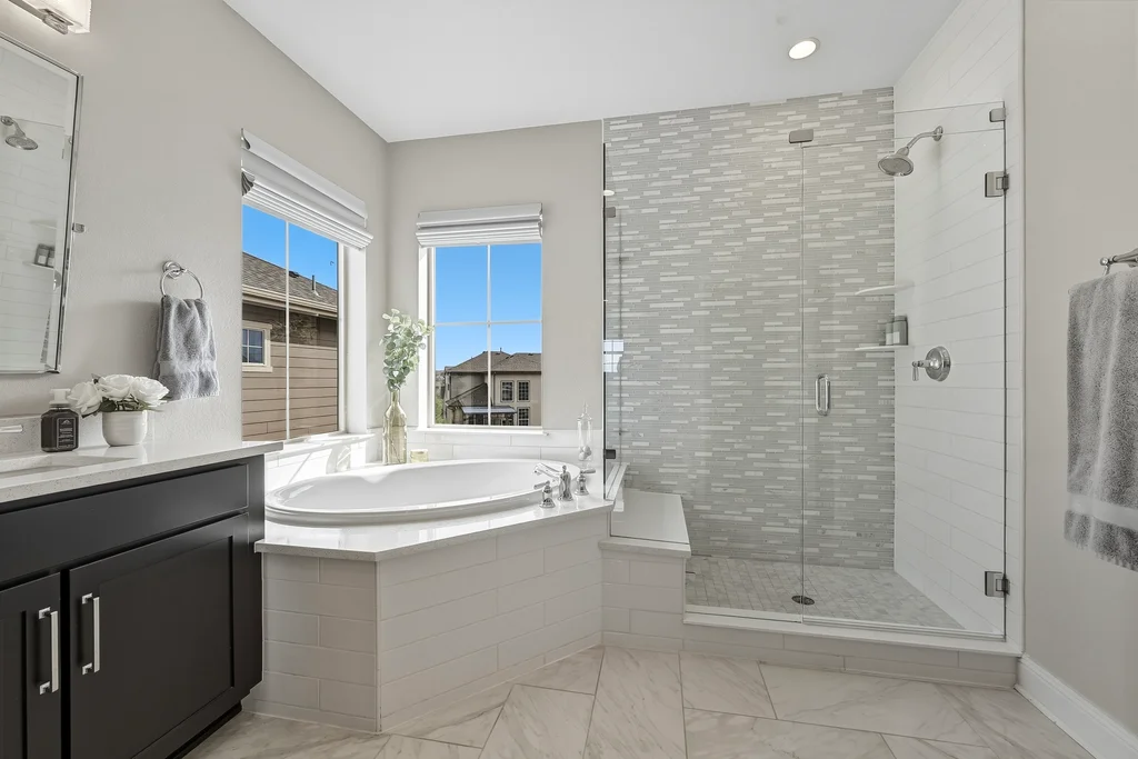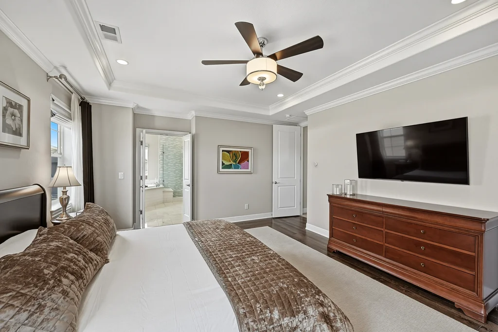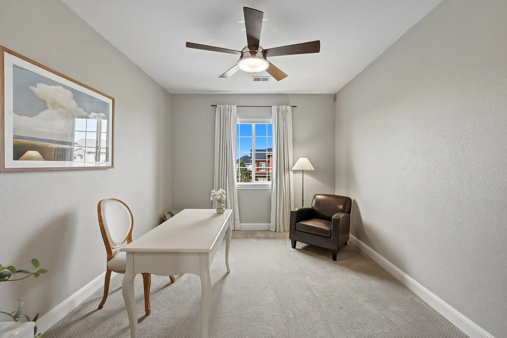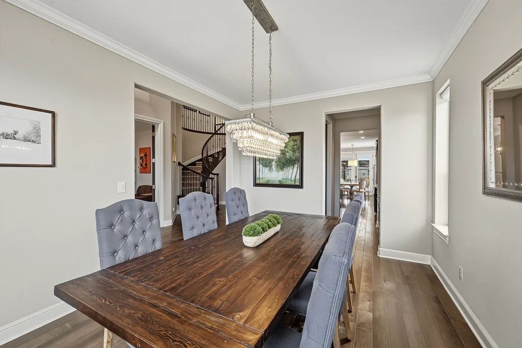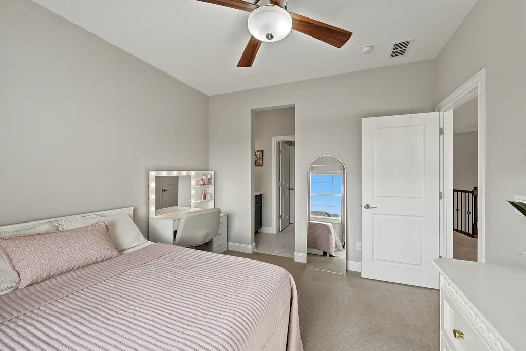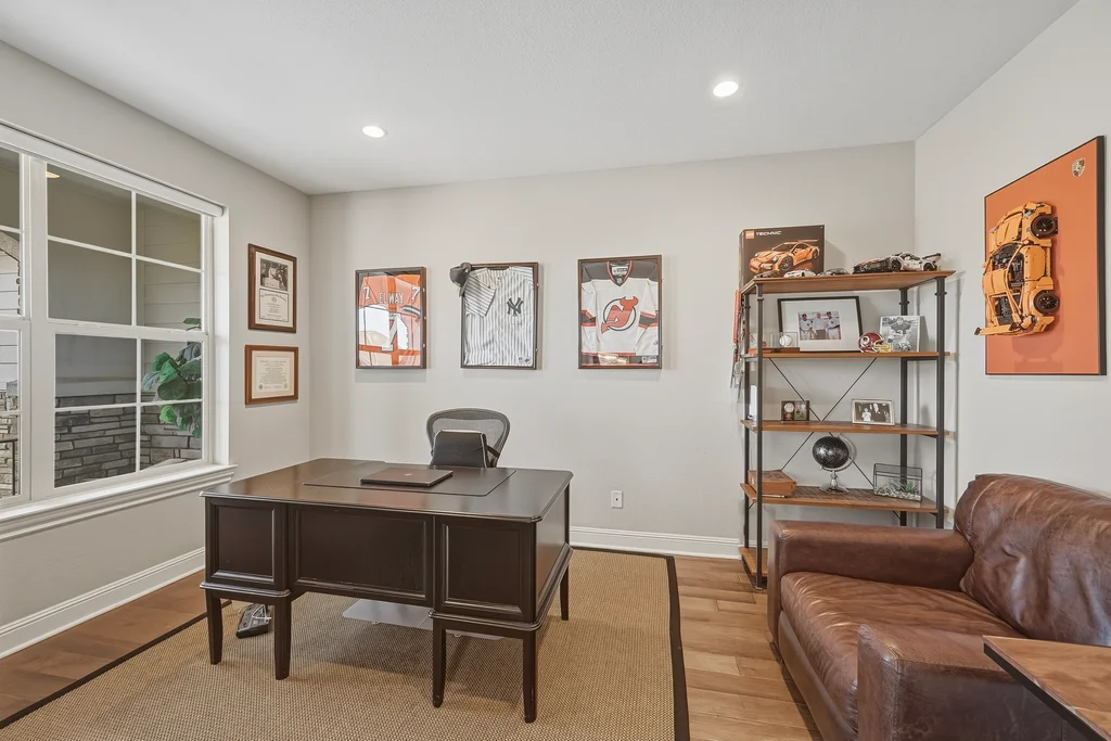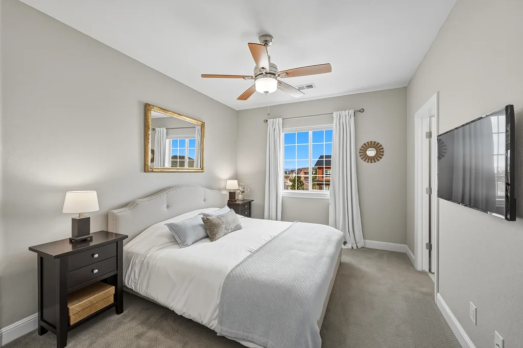 Step into a beautifully upgraded residence where thoughtful design meets everyday comfort. A striking curved staircase welcomes you, leading to a main level that immediately impresses with a breathtaking living room defined by soaring ceilings and an abundance of windows that flood the space with natural light, creating an airy, dramatic setting. The layout blends elegance and function with a private office behind French doors and a formal dining room perfectly positioned to capture scenic mountain views. The gourmet kitchen is equally impressive, featuring double ovens, a 5-burner gas range, an upgraded built-in refrigerator, soft-close cherry cabinetry, an oversized island, and a butler’s pantry, all flowing effortlessly into a sun-filled breakfast nook and out to the extended patio with pergola and flat, usable backyard — a perfect setting for weekend gatherings or relaxing evenings. Complementing the stunning visual appeal are behind-the-scenes upgrades, including structural and efficiency improvements, ensuring lasting quality, comfort, and value. Upstairs, the luxurious primary suite offers a tray ceiling, warm hardwood flooring paired with a luxurious carpet detail, a spa-inspired bath, and a spacious walk-in closet. A private guest suite and Jack-and-Jill bedrooms provide ideal flexibility, and mountain views can be captured from most of the upstairs bedrooms. The finished basement adds two additional bedrooms, a wet bar, and generous entertaining space. This home is located in the highly desirable Idyllwilde community and is situated on a landscaped ¼-acre corner lot with solar panels and an extended 3-car garage wired for EV charging. With access to a charming community coffee house, sparkling pool, clubhouse, scenic trail system, pocket parks, food trucks, neighborhood events, and schools within walking distance, every day here feels like something special. Welcome to a home that stands out for all the right reasons — where no detail was missed.