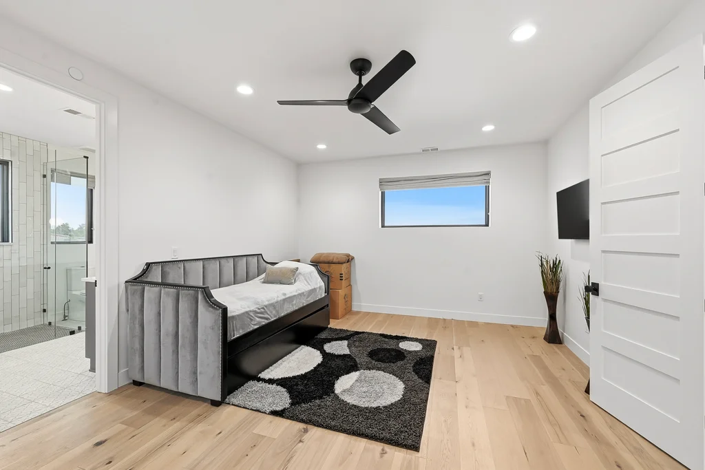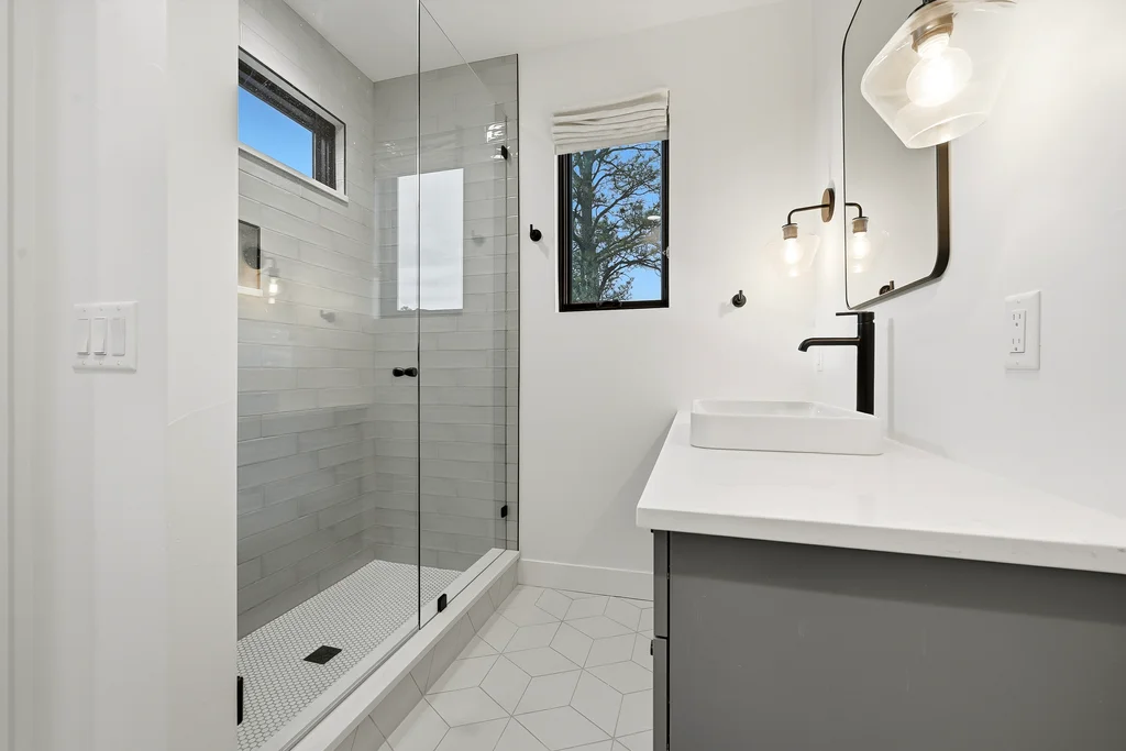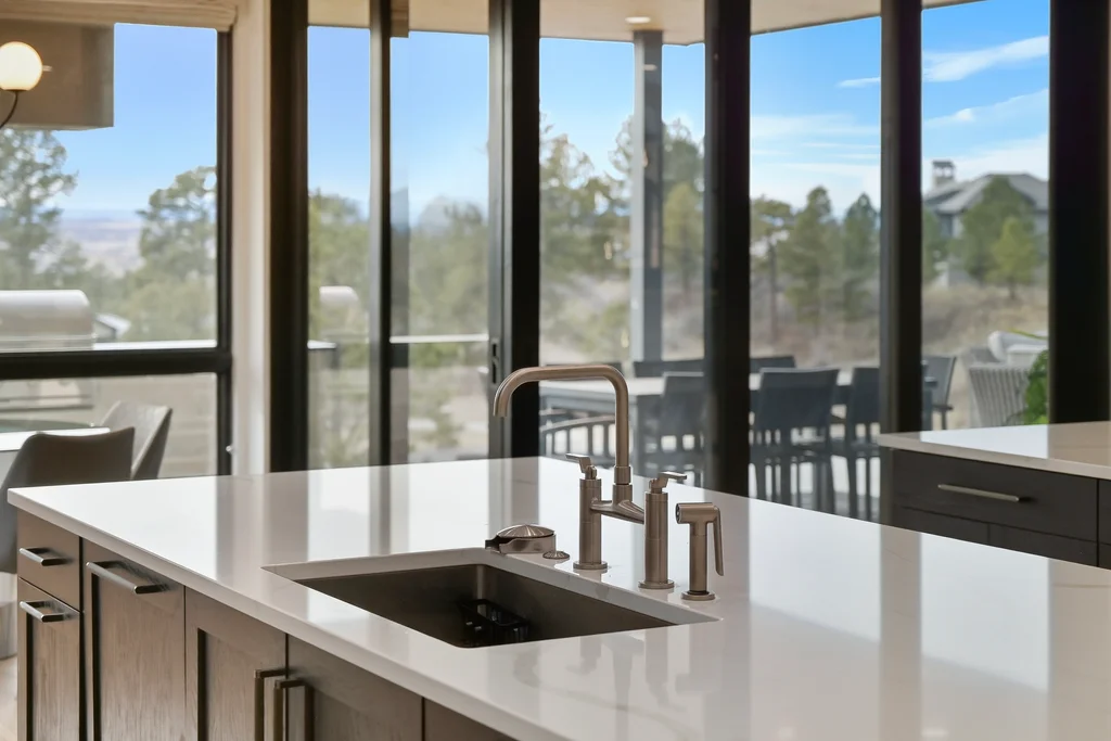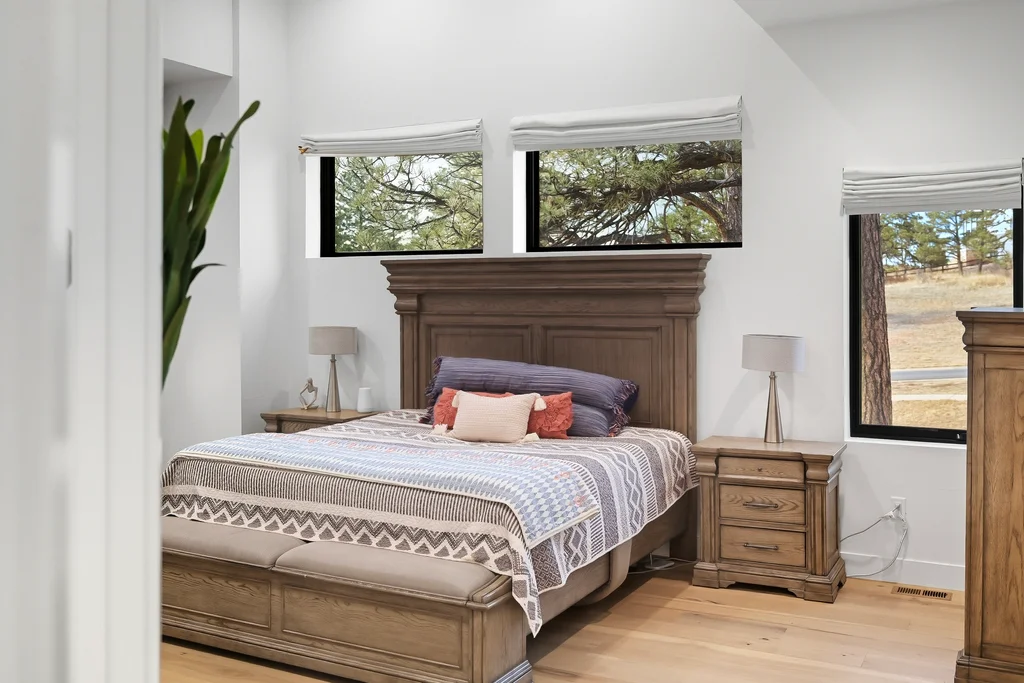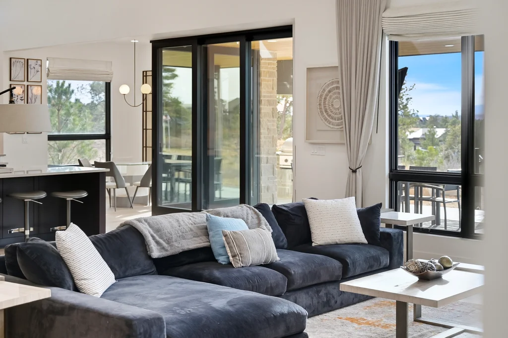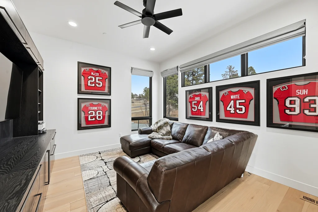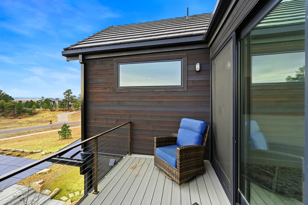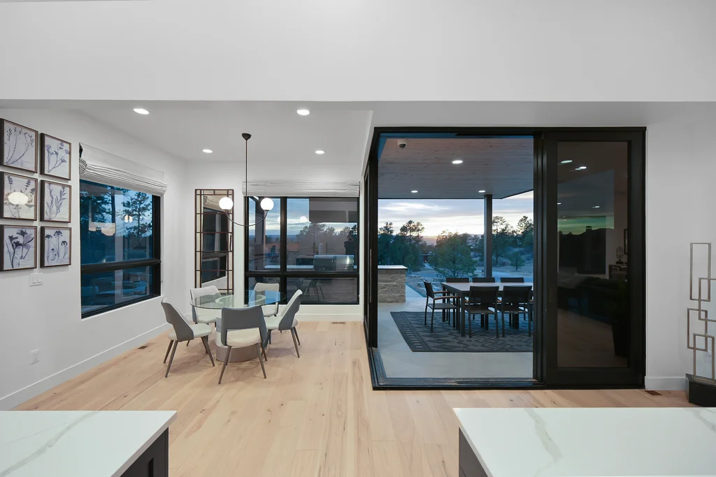 This extraordinary custom residence blends modern architecture, luxury design, and resort-style living on a breathtaking, private setting. Thoughtfully crafted with soaring ceilings, wide-plank hardwood floors, and walls of windows, the home is filled with natural light and showcases stunning mountain and acreage views throughout. The heart of the home is an open-concept living space anchored by a chef's kitchen with bold soapstone double islands, premium appliances, a cleverly concealed behind seamless cabinet front walk-in pantry, and seamless flow into elegant dining and gathering areas-perfect for both everyday living and grand entertaining. The primary suite is a true retreat, offering a serene bedroom, spa-inspired bath with soaking tub and dual vanities, a gorgeous walk-in closet, and a convenient main-level laundry just steps away. Additional bedrooms are spacious and beautifully appointed, providing comfort and flexibility for family and guests. The lower level is an entertainer's dream, featuring a full custom bar, expansive recreation space, media area, and a private guest suite with an attached designer bath, coffee bar with beverage refrigerator-ideal for visitors or multi-generational living. Outdoor living rivals that of a luxury resort with a covered patio complete with built-in grill, covered dining area, multiple seating zones, firepit and panoramic views. The grounds are equally impressive, offering a sports court, pool area, hot tub, terraced patios, and tranquil spaces to unwind and take in Colorado's natural beauty. A gated dog run, stunning landscaping, and expansive 5- car heated garage complete this exceptional property. This is more than a home-it's a lifestyle of elegance, comfort, and unforgettable living.
